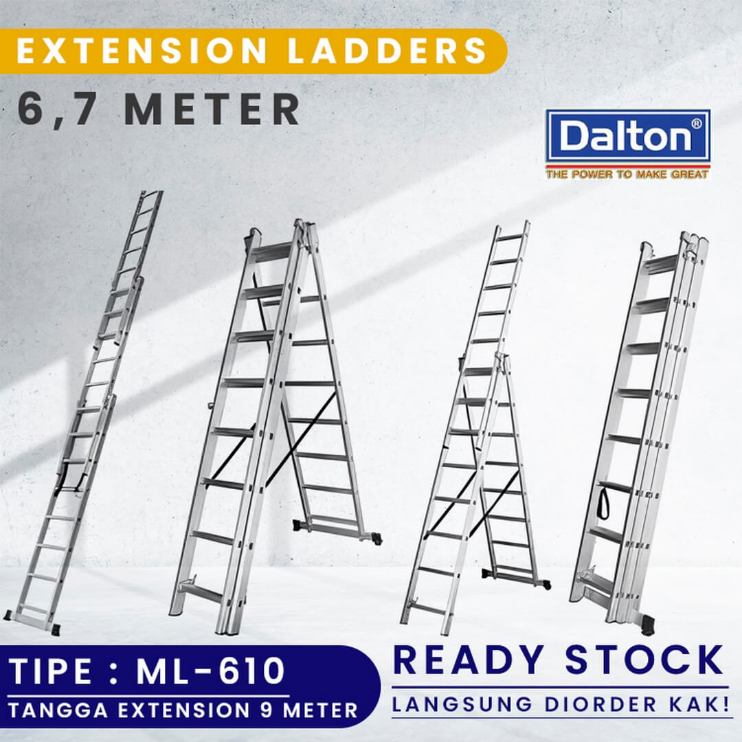 Tangga Multi Purpose Dalton tipe ML-610 adalah tangga yang sangat praktis dan multiguna untuk membantu proses pekerjaan yang membutuhkan alat untuk mencapai ketinggian. Ladder / Tangga Multi Purpose Dalton ini sangat serbaguna untuk kebutuhan rumah tangga anda sekalian. Ladder / Tangga Multi Purpose Dalton tipe ML-610 ini memiliki tinggi maksimal 6.7meter dengan maksimal kapasitas 150 kg. Ladder / Tangga Dalton ini terbuat dari Alumunium sehingga terjamin kekuatan produknya. Untuk Spesifikasi detail Ladder / Tangga Multi Purpose Dalton ini dapat dilihat di gambar produk.